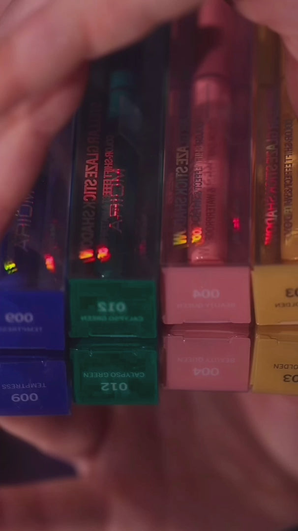 Glaze Stick Shadows! dual chrome shadows are a total game-changer for your makeup routine. They deliver a mesmerizing shift in color, ensuring your eyes demand attention with every blink. These waterproof sticks are designed for effortless application—no glue is required. Whether aiming for a subtle shimmer or a bold, showstopping look, Stellar Glaze Stick Shadows are perfect for any occasion. Elevate your eye makeup game and command the spotlight like the star you are!